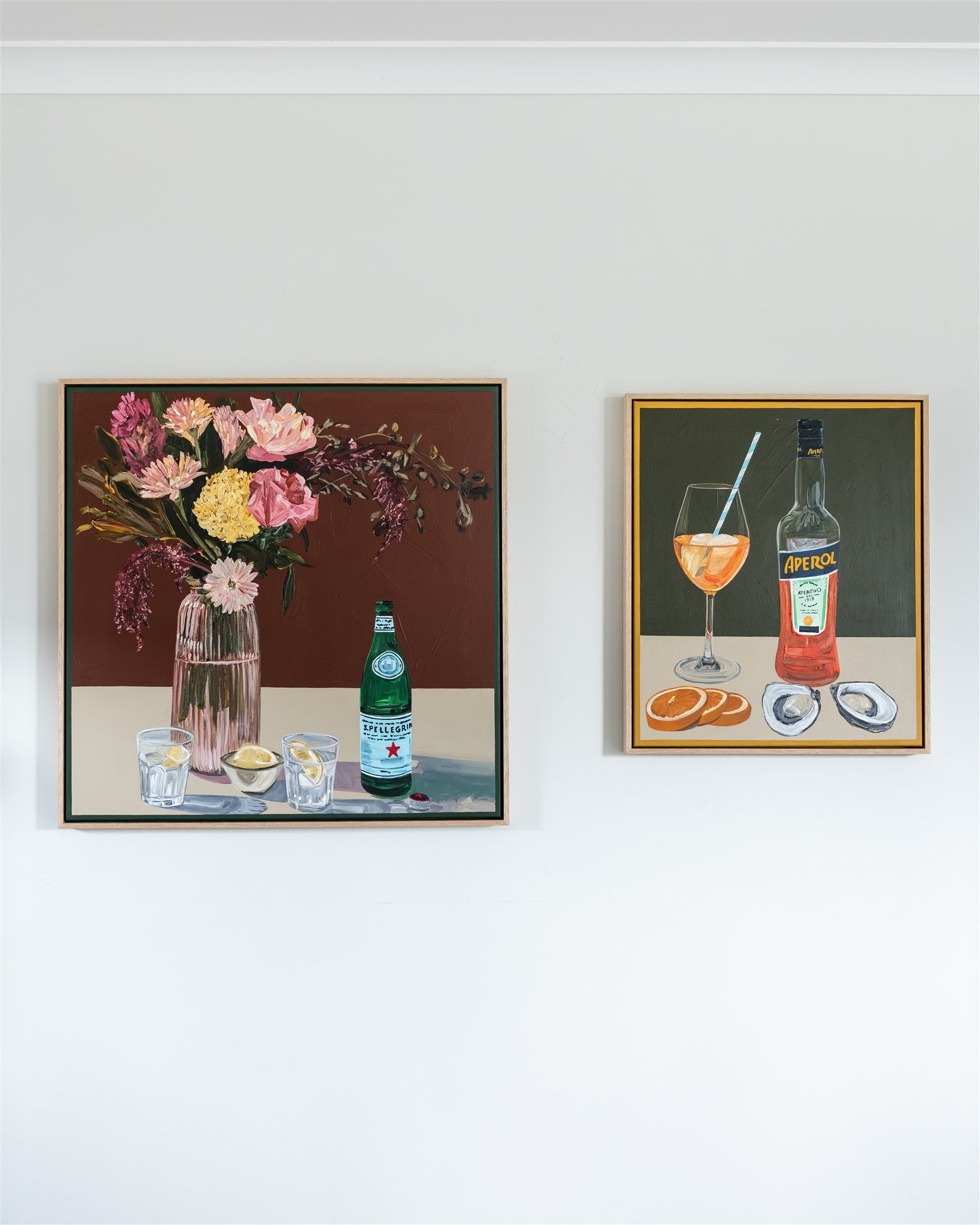The joy of late afternoon aperitivo. Aperol, oysters and olives tones on your walls.