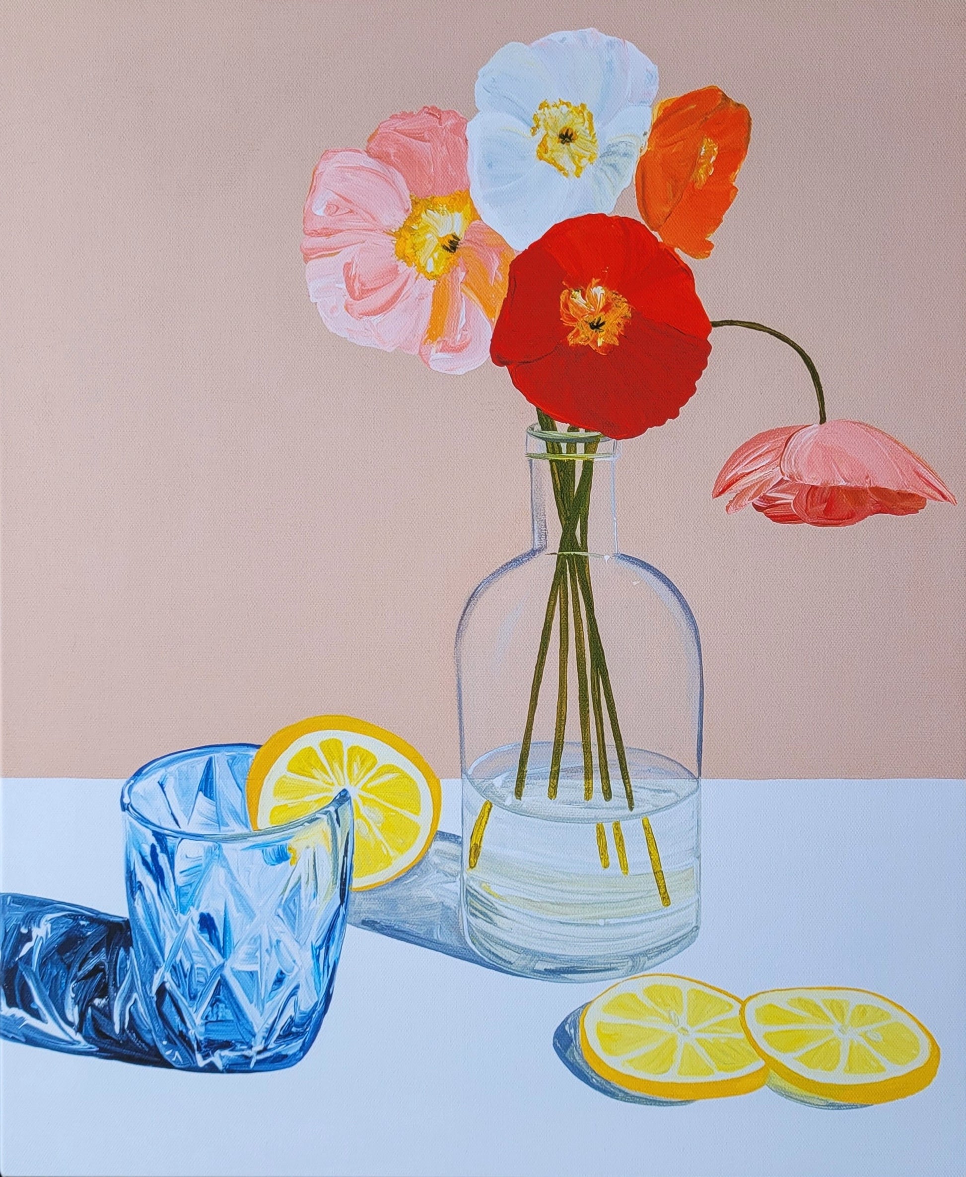 Jessie is a lover of wine, coffee, travel, and art and appreciates the life a piece of art can bring to a home. Recently she has been finding a connection with painting glasses, bottles, shadows and reflections in her latest series of cocktails.