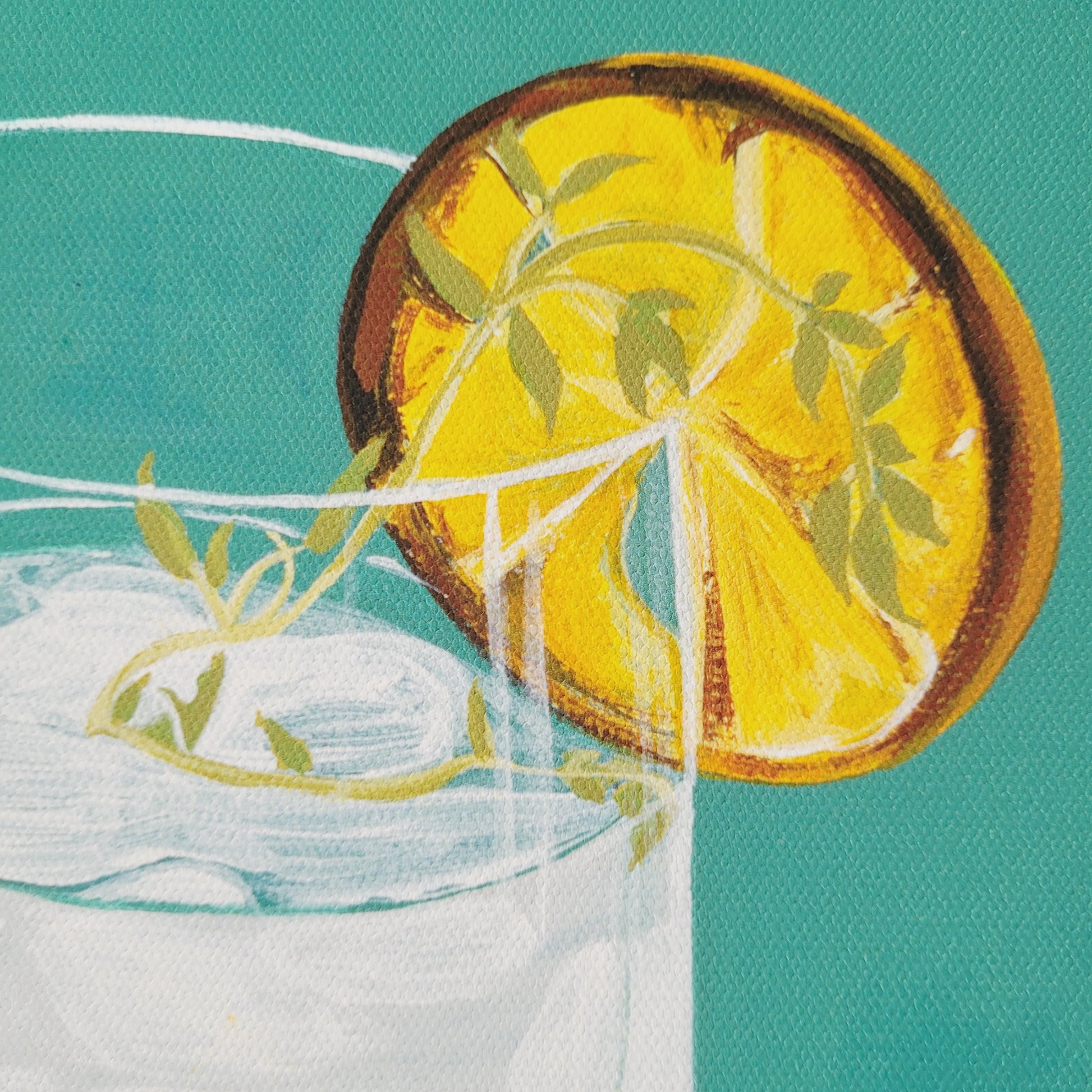 Framed Canvas Print 'Gin & Tonic with Charred Lemon & Fresh Thyme'