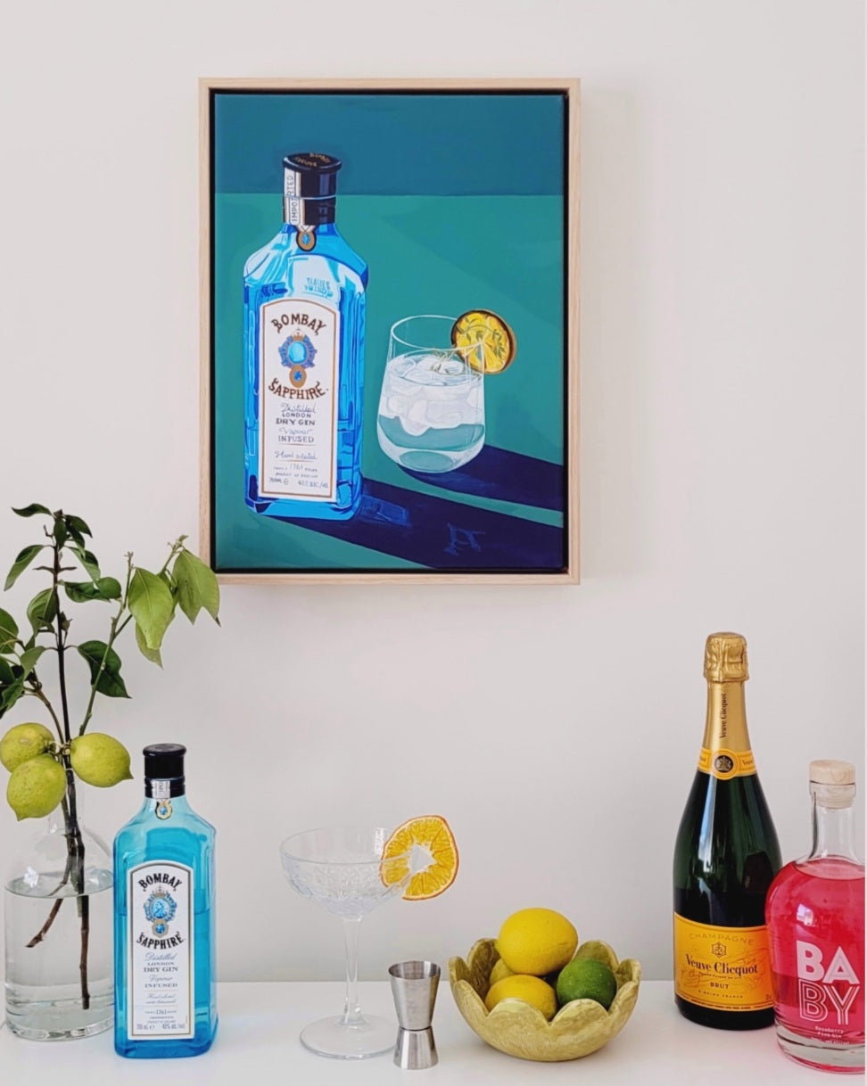 Jessie is a lover of wine, coffee, travel, and art and appreciates the life a piece of art can bring to a home. Recently she has been finding a connection with painting glasses, bottles, shadows and reflections in her latest series of cocktails.