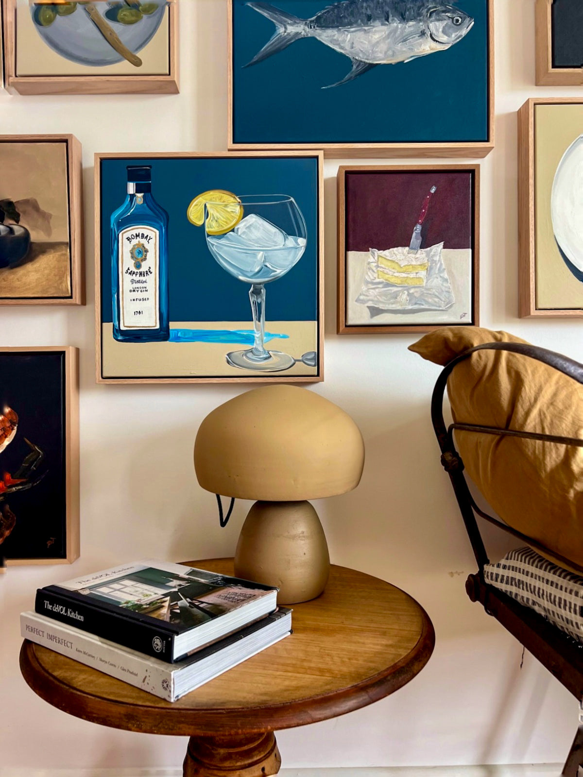 Jessie is a lover of wine, coffee, travel, and art and appreciates the life a piece of art can bring to a home. Recently she has been finding a connection with painting glasses, bottles, shadows and reflections in her latest series of cocktails.