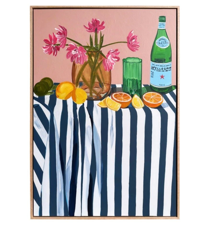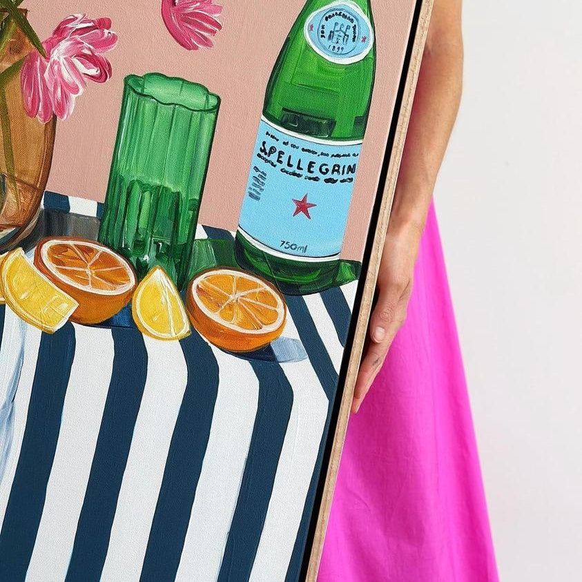 This painting was inspired by the feeling of summer, the smell of fresh blooms in your house, and chilled sparkling water.