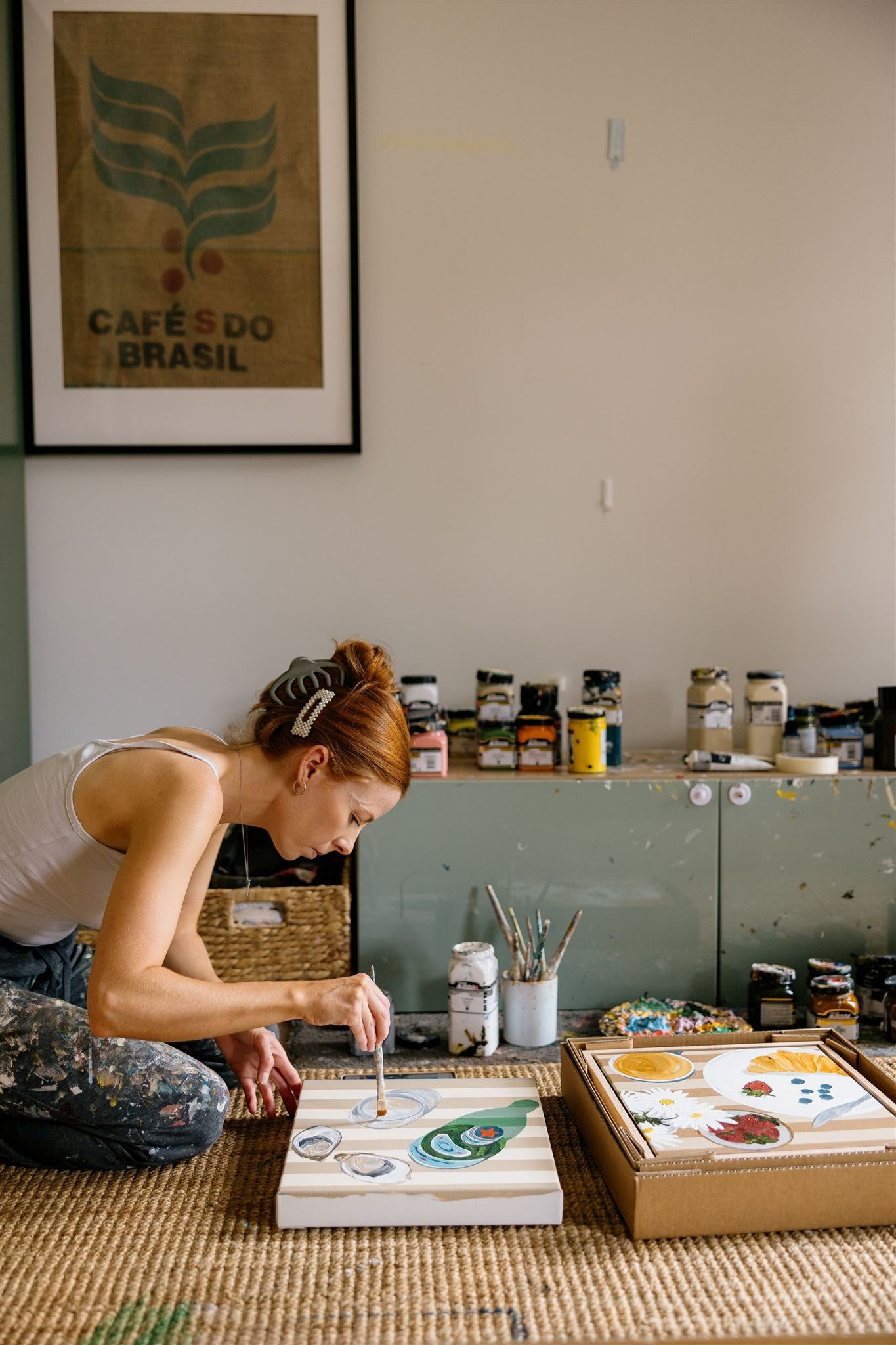 Jessie is a lover of wine, coffee, travel, and art and appreciates the life a piece of art can bring to a home. Recently she has been finding a connection with painting glasses, bottles, shadows and reflections in her latest series of cocktails.