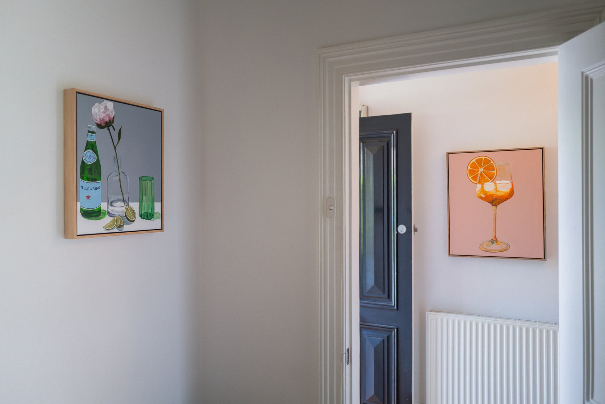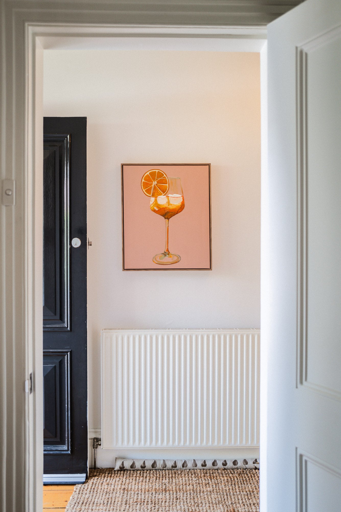 This Aperol painting is definitely a way to be greeted at the door. The vibrant orange hues of the Aperol and the pink background create a harmonious contrast that is both pleasing to the eye and inviting to the soul.