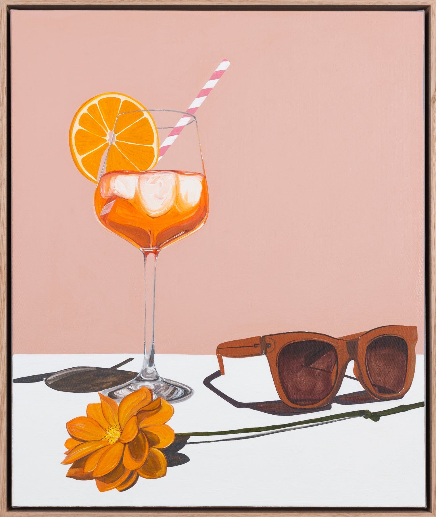 Framed in oak, gallery wrapped edge, hand painted by the artist for a strong contemporary look.