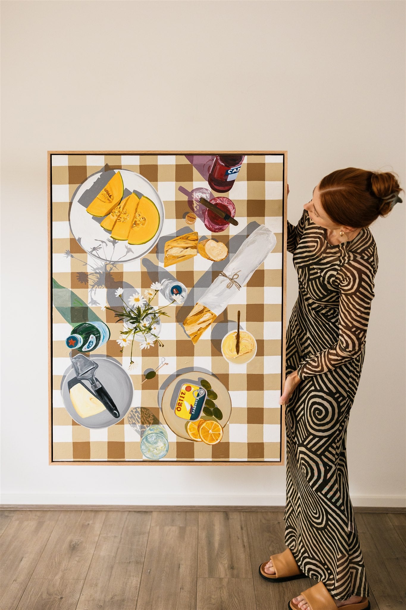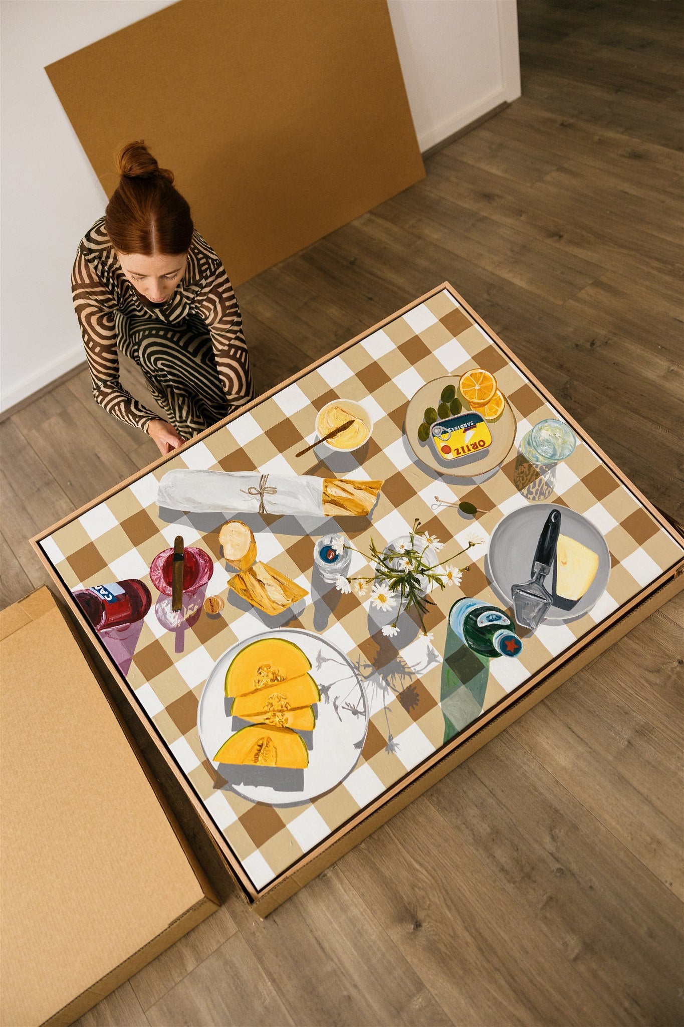 As the sun sets, the evening aperitivo scene comes alive with checkered tapestry, negronis, olives, sardines and bread, a table set for connection and conversation.